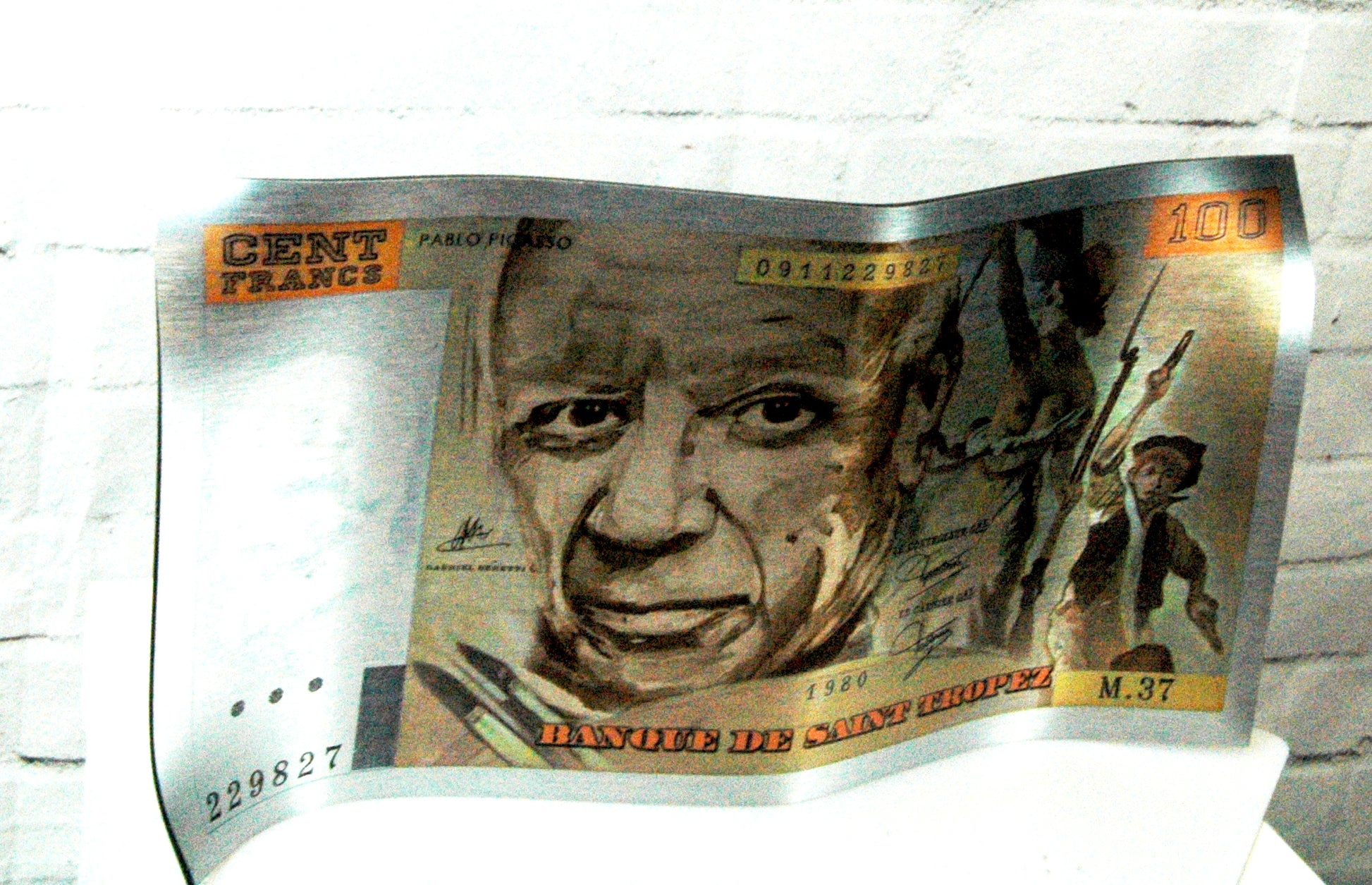 Si l’huile sur toile du peintre Delacroix avec son oeuvre “La liberté guidant le peuple” était inspirée de la révolution Française et des trois Glorieuses, l’Univers de Gabriel vous invite ici, par ce billet de 100 Francs à une liberté guidée par les artistes de ST Tropez, mémoire d’un milieu artistique audacieux et confiant dans ce village merveilleux.