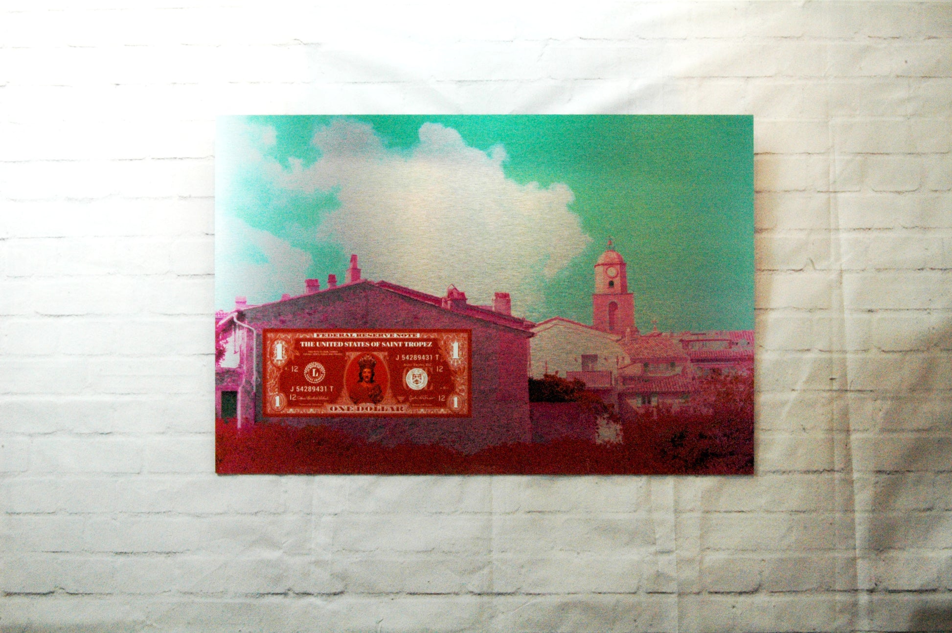 Mon accroche : L’univers de Gabriel s’ouvre sur un quartier Tropézien entre la Ponche et le cimetière marin, au pied de la Citadelle, enluminé de couleurs, soulignant au premier plan, une des sculptures de Gabriel et à l’arrière plan, le mystique clocher de ST Tropez.