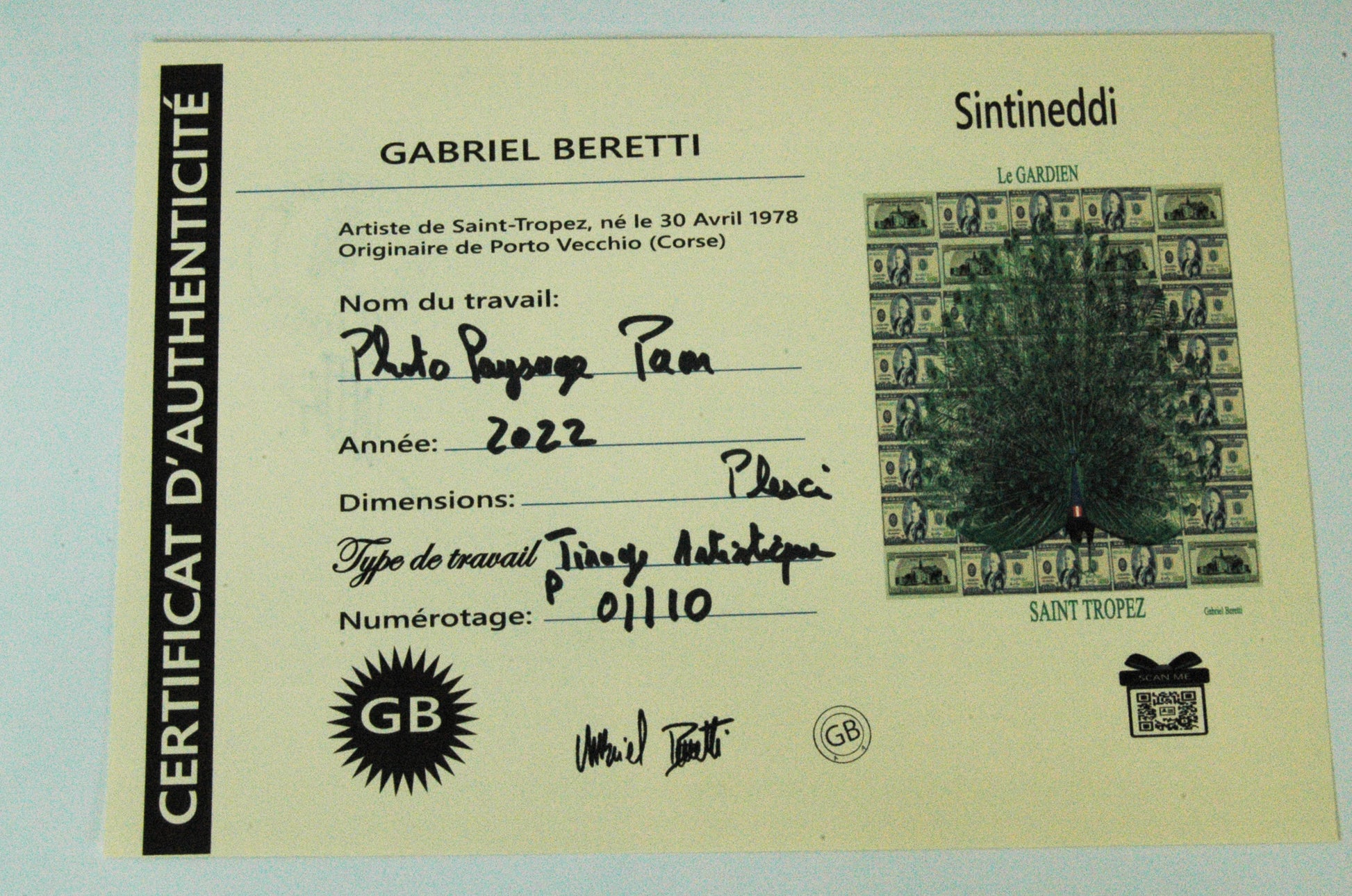 “Le Paon” Restez à ST Tropez sous la protection de notre sentinelle sacrée : le paon majestueux de couleurs vives, veillant du haut de la citadelle sur le village, ses habitants et ses visiteurs, véritable gardien bienveillant, bienvenu dans l’Univers de Gabriel.